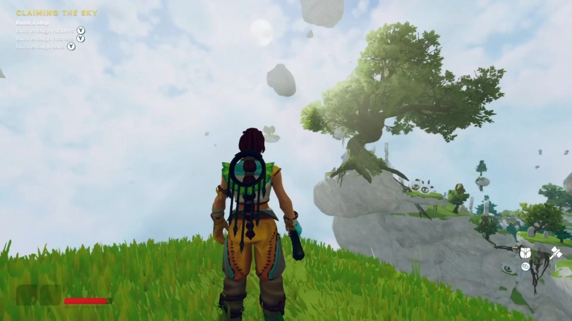You start off on a lush sky island that’s drifting around this eternal hurricane (dramatic, right?), gathering resources, visiting other islands, and trying to fight off this fungal corruption that’s slowly spreading to the other islands.
